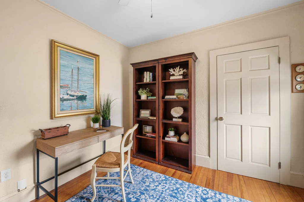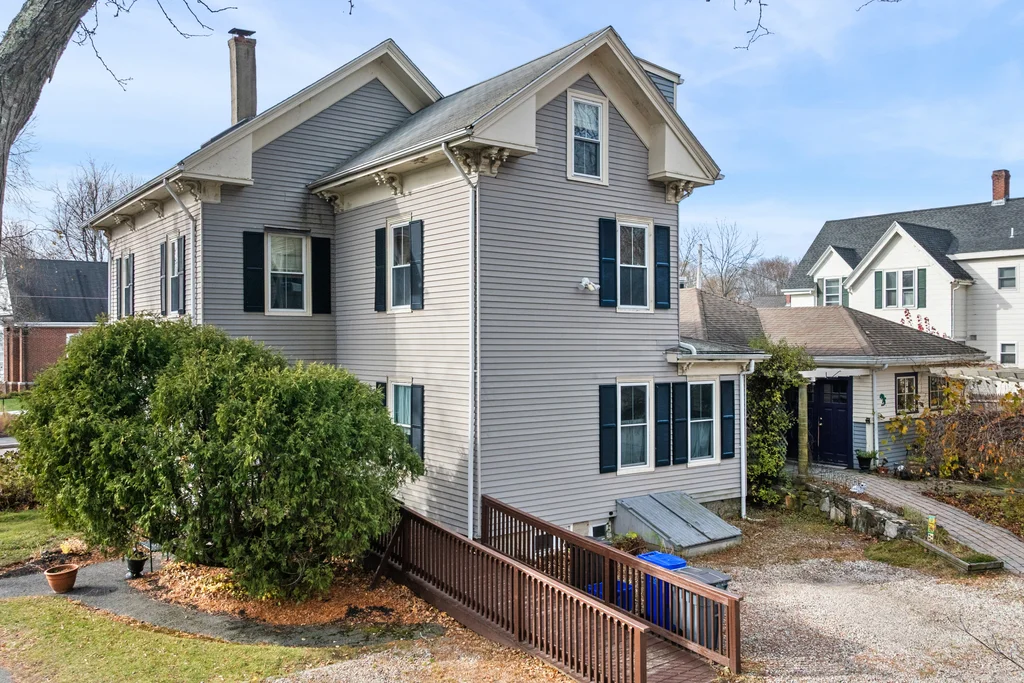 Spacious and charming condo ideally located near town, schools and across from Abbot Public Library, bike path, easy access to Seaside Park, Devereux Beach & shops. Bright and inviting, this large 3-bed, 2-bath condo offers approx. 1,800 sq. ft. across 2 levels in a c.1920 two-family home. A welcoming private entry with coat closet and a beautiful staircase lead up to the unit. The main level features wood floors throughout, a living room with exposed beams and a wood-burning stove, dining room, dedicated home office space, sunny kitchen with gas stove and granite countertops, full bath, and in-unit laundry. A second staircase provides convenient access to the rear entrance and driveway. The top floor offers three bedrooms, a full bath, skylights for abundant natural light, and great closet space. Enjoy three raised garden beds, a small shed — and 2 off-street parking spots. An incredible investment opportunity in one of Marblehead’s most iconic locations.