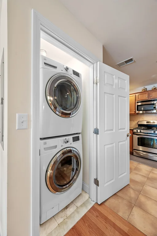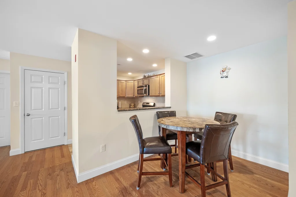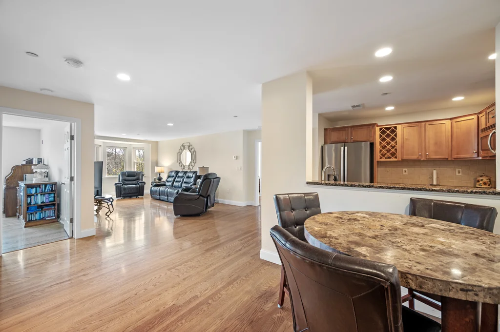 Experience elevated living in this impressively spacious condo at the professionally managed Britney Place Condominiums. This meticulously maintained home features an expansive open-concept layout with gleaming hardwood floors, recessed lighting, and central air. The chef-inspired kitchen boasts gas cooking, stainless steel appliances, and ample counter space. A smart split-bedroom floor plan ensures maximum privacy, placing bedrooms on opposite sides of the living area—each with its own full bathroom. The primary suite serves as a true retreat, complete with a large walk-in closet and en-suite bath. Enjoy the convenience of in-unit laundry and exceptional storage, including a private closet in the garage. This unit includes two deeded parking spaces (one garage, one outdoor). Perfectly situated for commuters near major highways, bus lines, and bike trails, you are minutes from the vibrant dining and shopping at Gateway Center, Assembly Row, and downtown Everett.