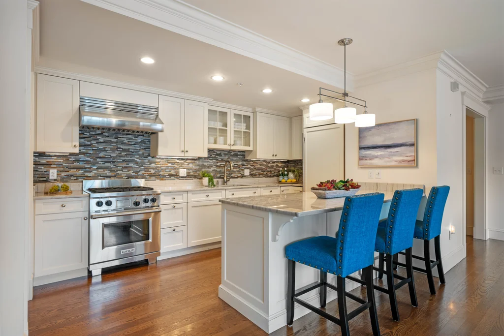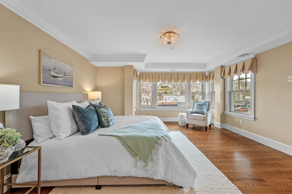 Welcome to Unit #205 at The Concordia, a rarely available unit in the luxury condominium building in the heart of downtown Swampscott. This two-bedroom, two-bath unit combines sun-filled elegance with ultimate convenience, featuring two deeded garage parking spaces with elevator access—perfect for effortless coastal living. The open-concept layout flows seamlessly from a high-end kitchen with a gas Wolf range, granite countertops and hardwood floors into the living and dining areas, highlighted by a gas fireplace. The primary suite is a true retreat, offering a walk-in closet, en-suite bath with double vanity and marble tiled shower, and a private balcony with ocean views. A spacious second bedroom & full bath provide flexibility for guests or a home office, while in-unit laundry adds everyday convenience. Enjoy views of the Boston skyline from the shared green space, direct beach access and a lifestyle just steps from shops, restaurants & more!